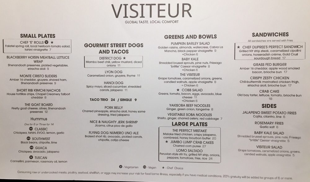 Introducing the Menu at The Visiteur
